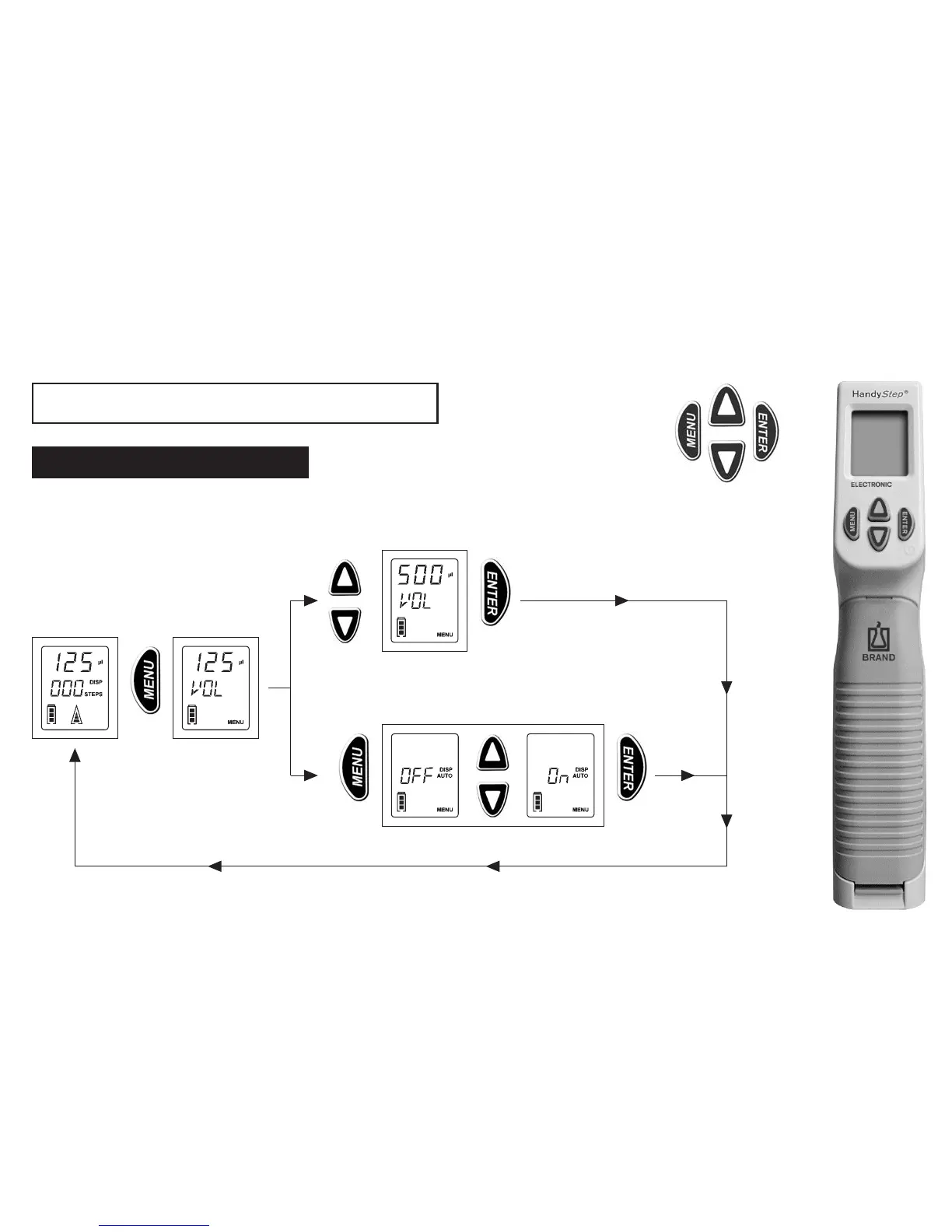 BRAND HandyStep electronic - Menu Level 1 Navigation; Default Operating Mode; Adjusting STEP Volume; Selecting AUTO-DISP Mode
