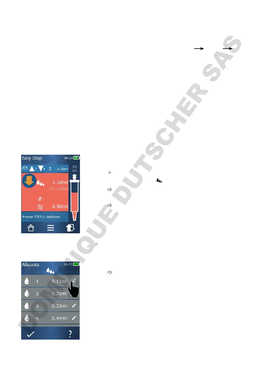 Si vous interrompez une aliquote (bouton X à l'écran), cette aliquote est comptée comme non dosée.