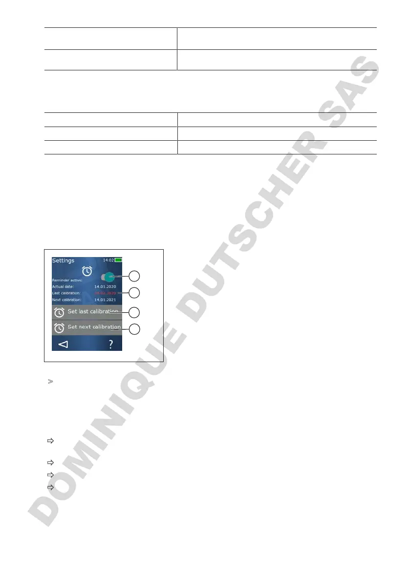 Si la fecha del próximo calibrado es anterior a la fecha actual, aparecerá en rojo y no se podrá ac-