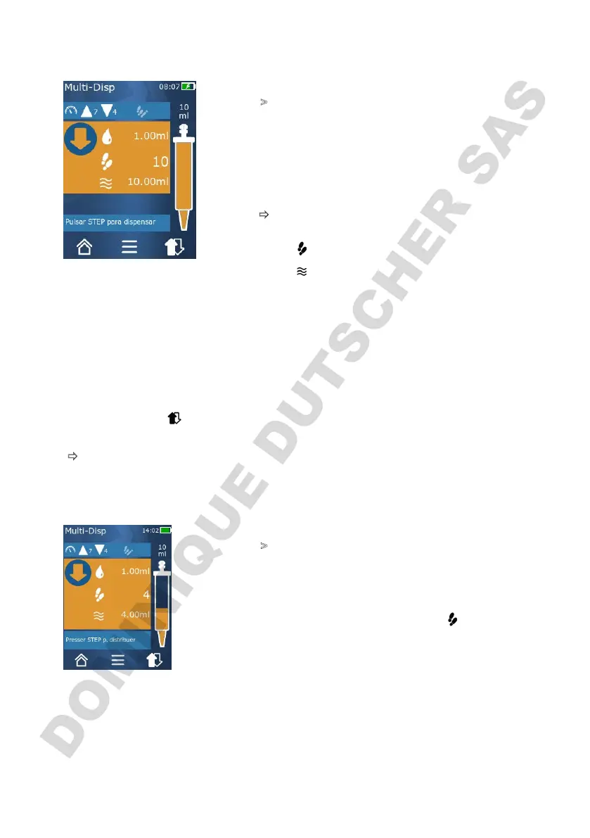 a. Presionar brevemente el botón STEP para interrumpir la aspiración de líquido.