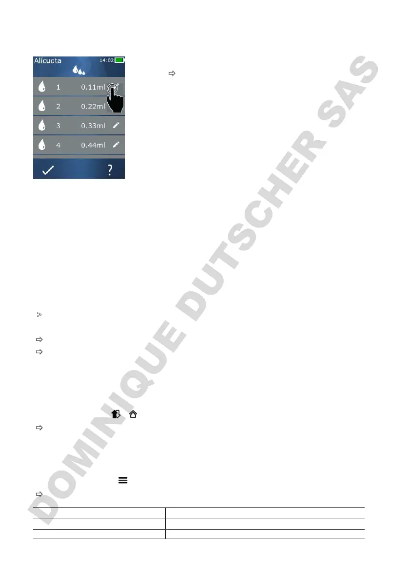 Al mismo tiempo, se selecciona el siguiente volumen en la lista de alícuotas. Este volumen se do-