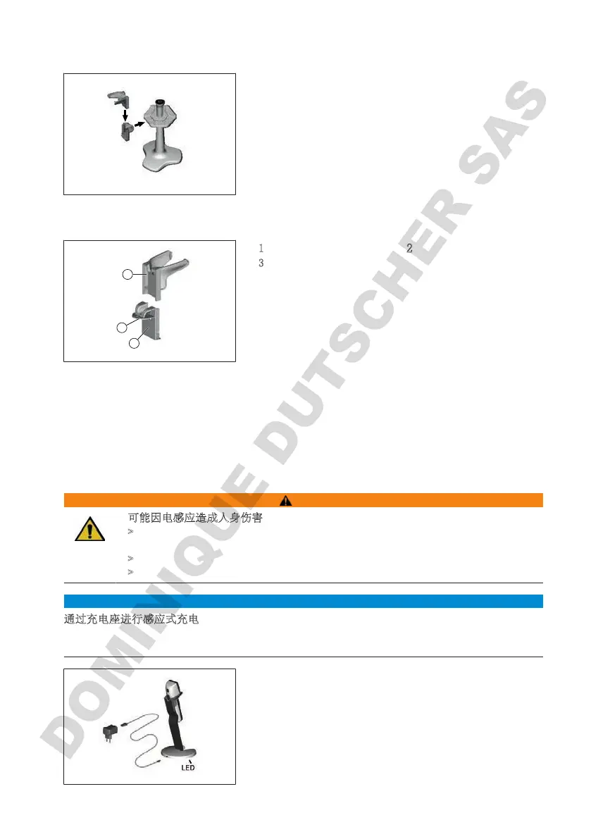 一旦连接电源后,充电座便可开始感应式充电。不得将磁性数据载体(例如信用卡)放在充电座
