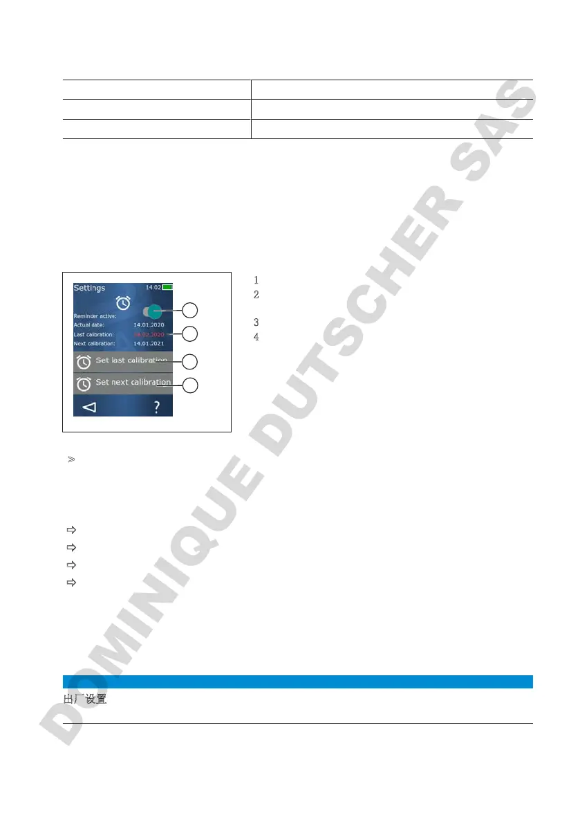 当检查间隔到期时,显示器上会显示一条提醒您重新检查设备的信息。