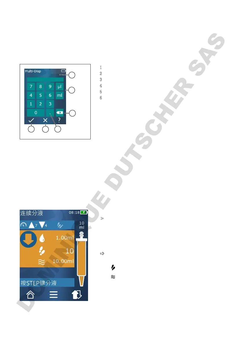 在不同的工作模式下通过键盘输入数值(例如,体积)。