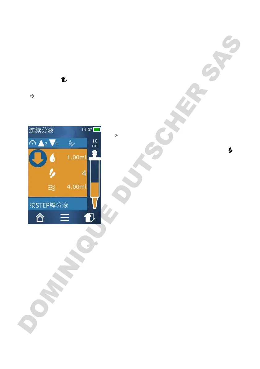 BRAND HandyStep touch - 中断并继续吸入液体; 分配液体; 处理剩余体积