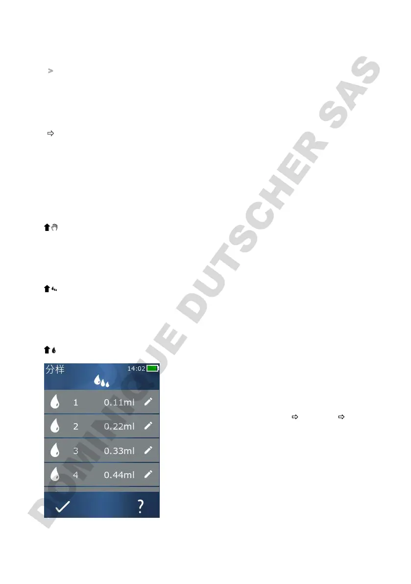在填充模式中您可通过 STEP 按键控制液体的吸入情况。