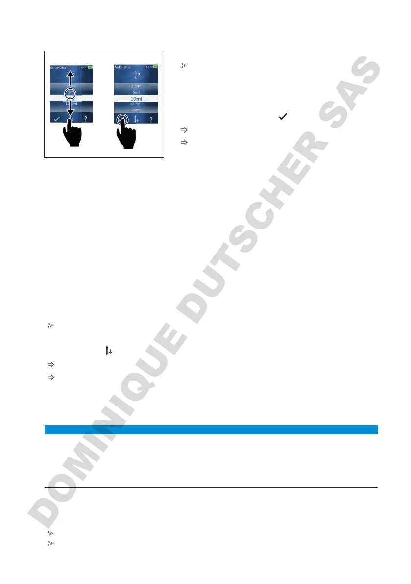 Kontrollieren Sie nach dem Einsetzen der Spitze, dass das korrekte Spitzenvolumen übernommen
