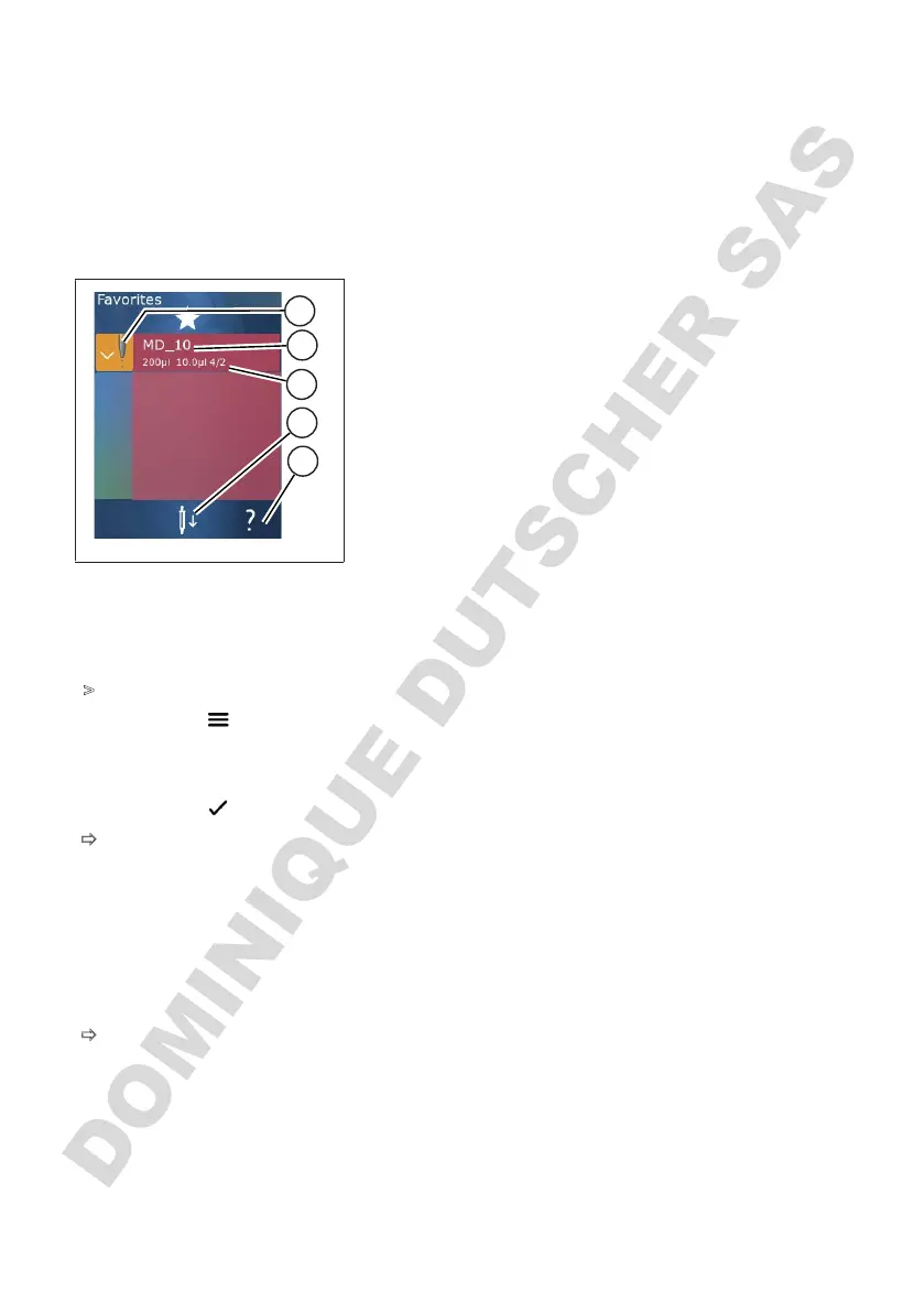 Der Favorit wird an das Ende der Favoritenliste im Menü Favoriten hinzugefügt. Siehe Favoriten