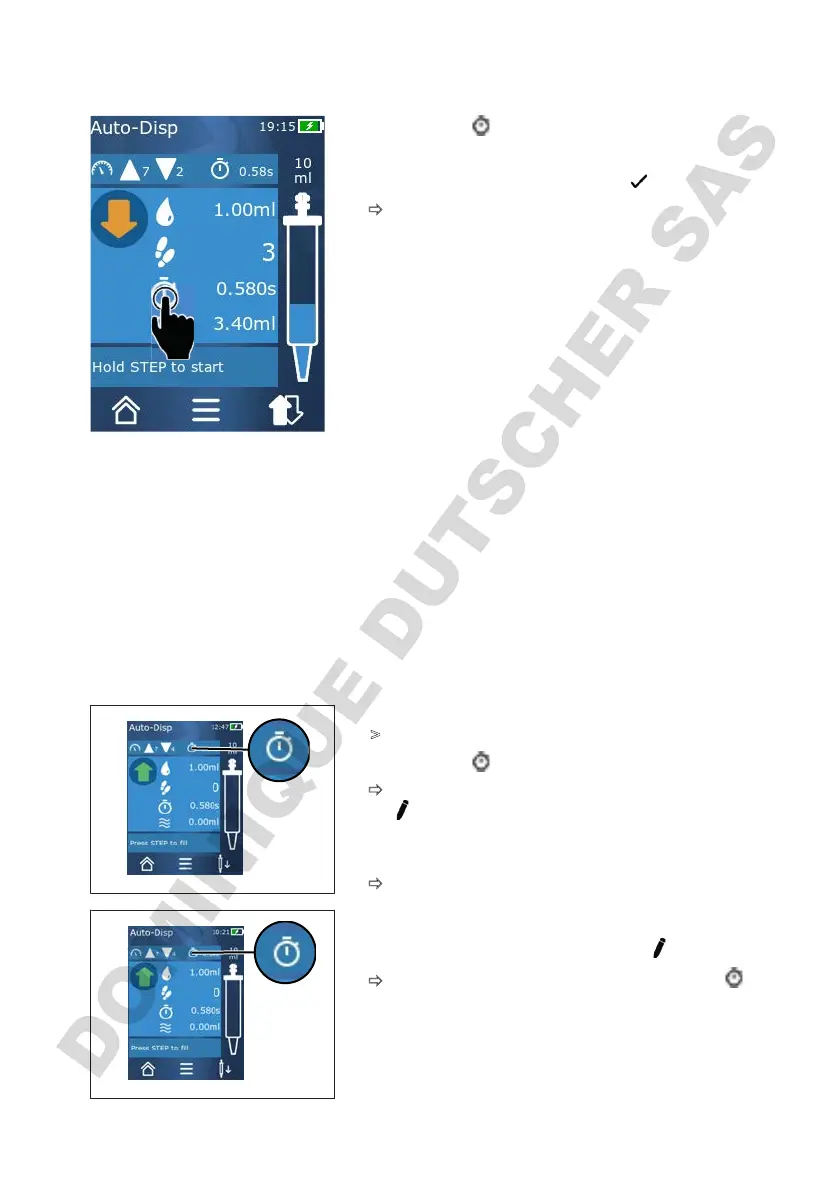 b. Dispense liquid at least 3 times, by briefly pressing the