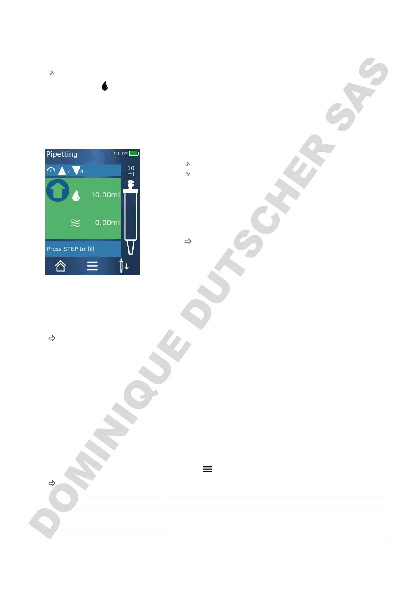 To stop filling the tip, press the STEP button.