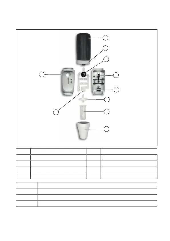 4 Pipettierhebel 9 Ventilsystem (PP; SI, PTFE)