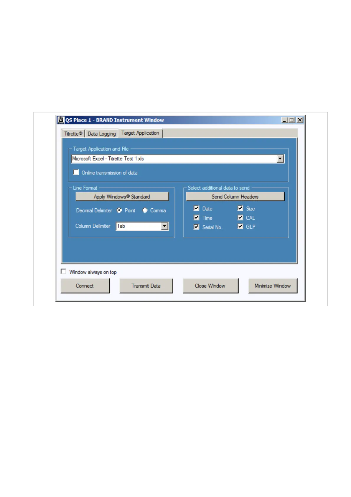 For transmission of data from the data logging into the target application e.g., in a spread sheet you have to