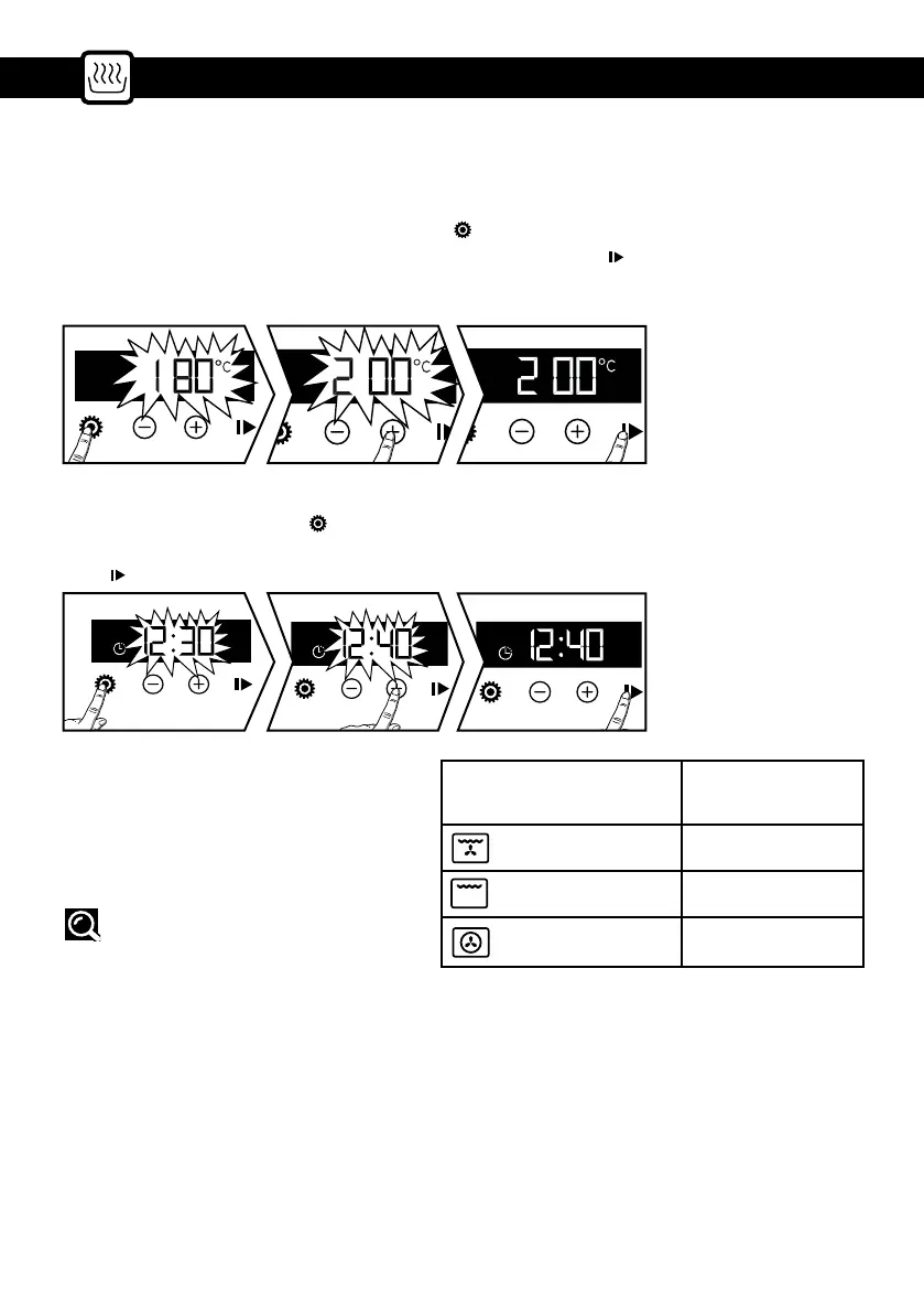 Il forno si riscalda, la funzione di cottura lampeggia. Quando il forno raggiunge la temperatura selezio-