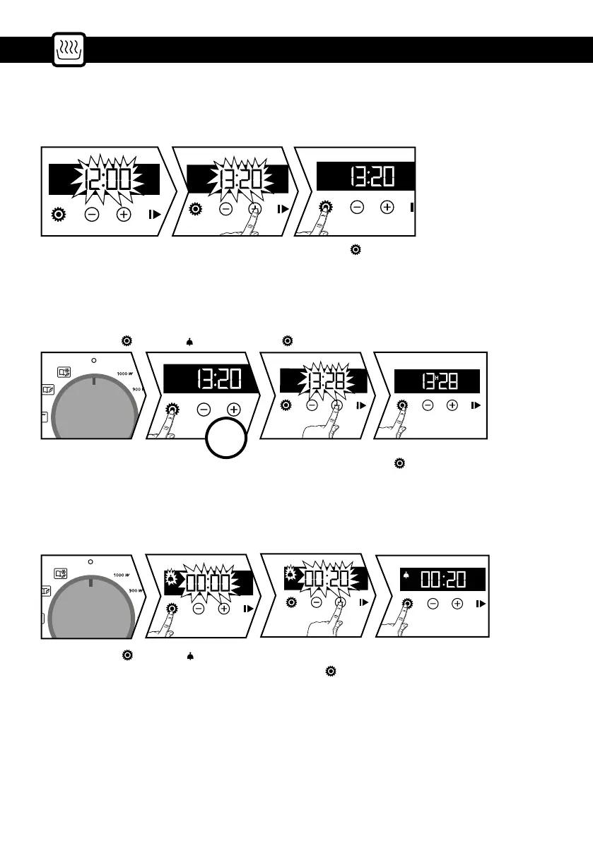 Still inn timeren med + og - knappene. Trykk på tasten for å bekrefte, begynner nedtellingen. Når