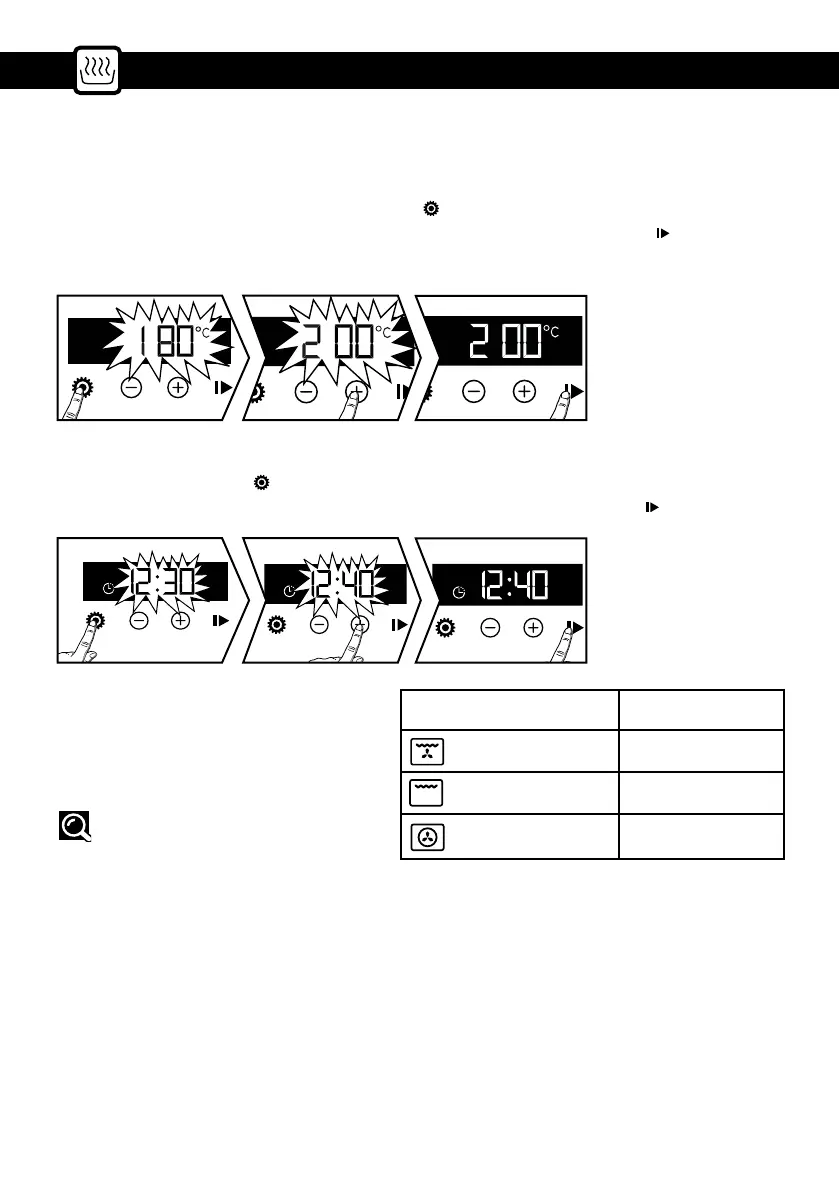 Piekarnik nagrzewa się, funkcja gotowania miga. Gdy piekarnik osiągnie wybraną temperaturę, rozle-