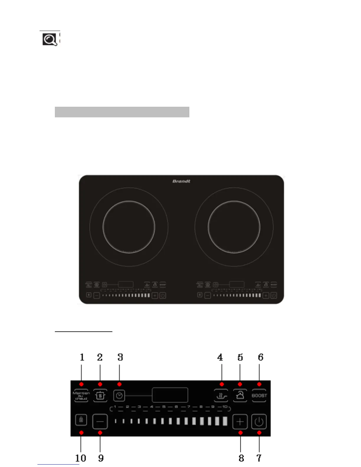 Brandt TI2FSOFT - Appliance Presentation; Induction Cooker Description; Control Panel Overview