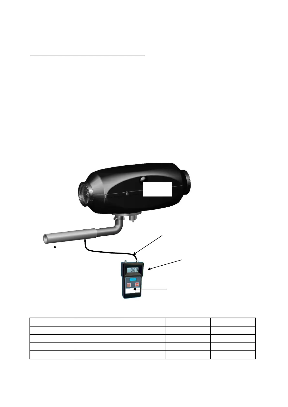 5. The underpressure in the test pipe should be 650 – 850 [Pa].