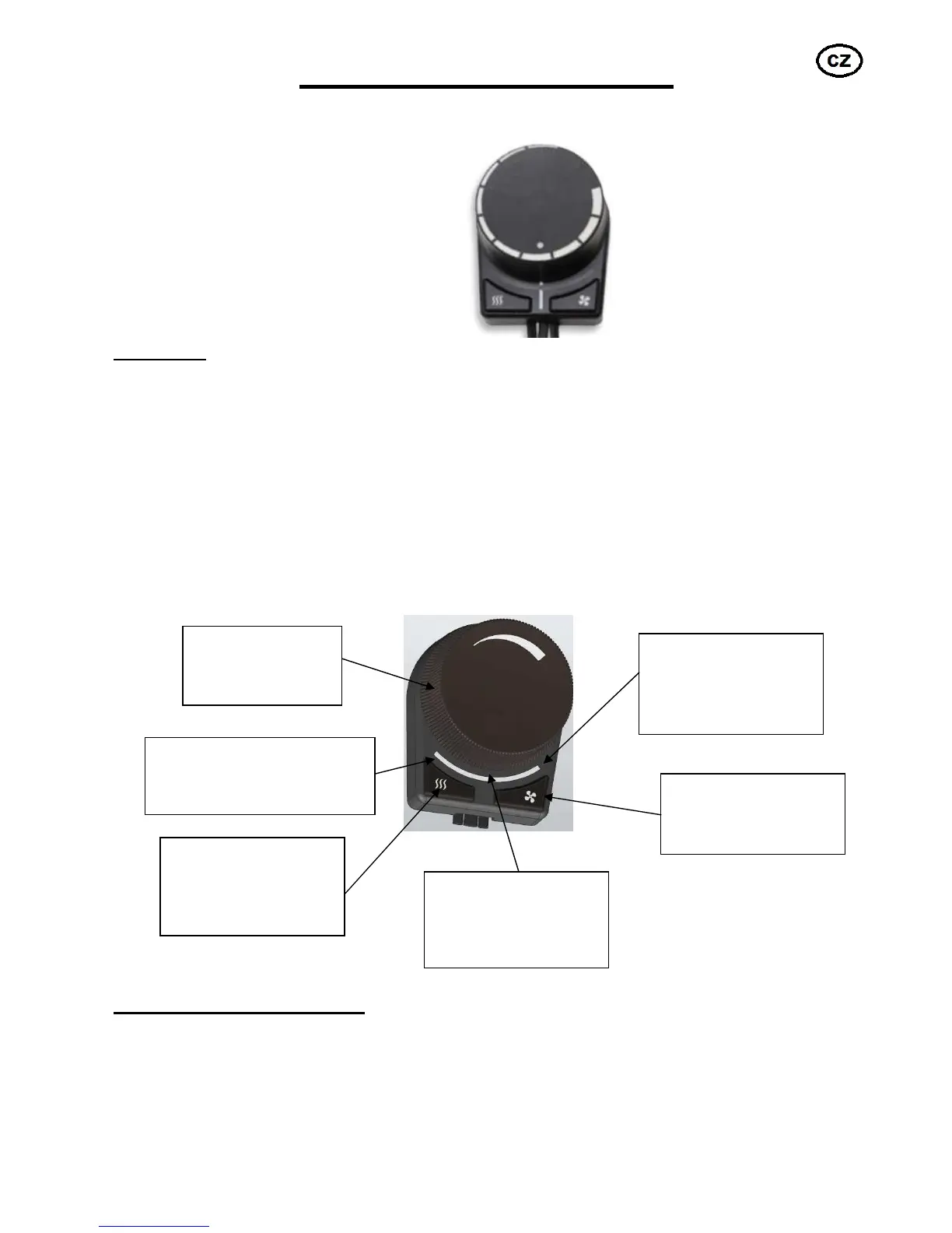 umožňuje zapínání / vypínání topení a ventilace. V režimu topení je možné otočným potenciometrem měnit