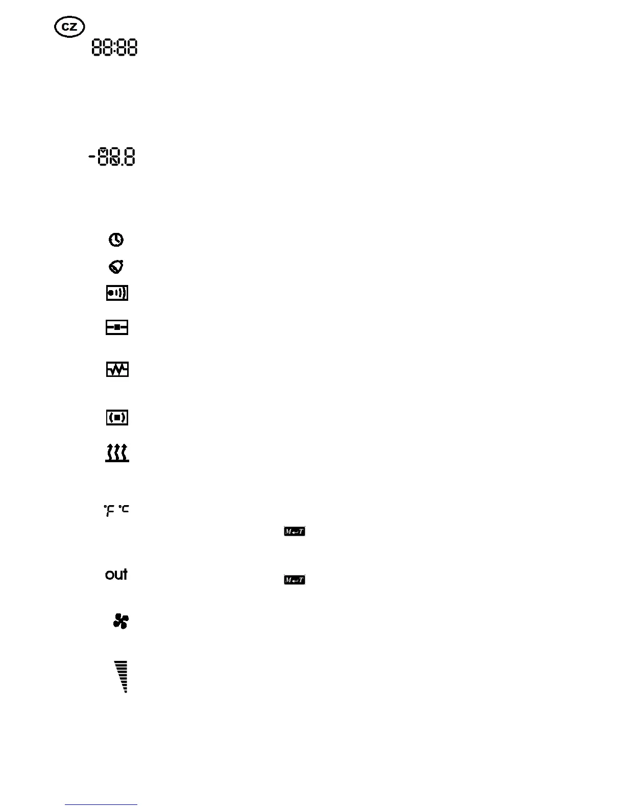 - společně se symbolem OUT k zobrazení teploty externího čidla,