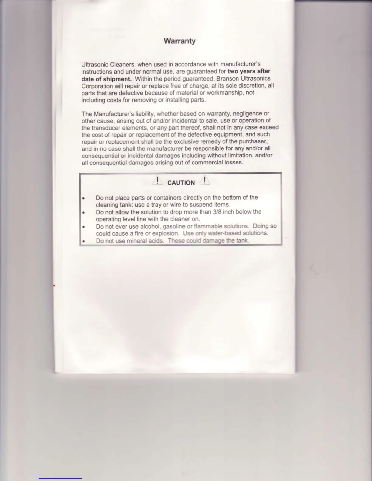 Branson 1510 - Warranty Information