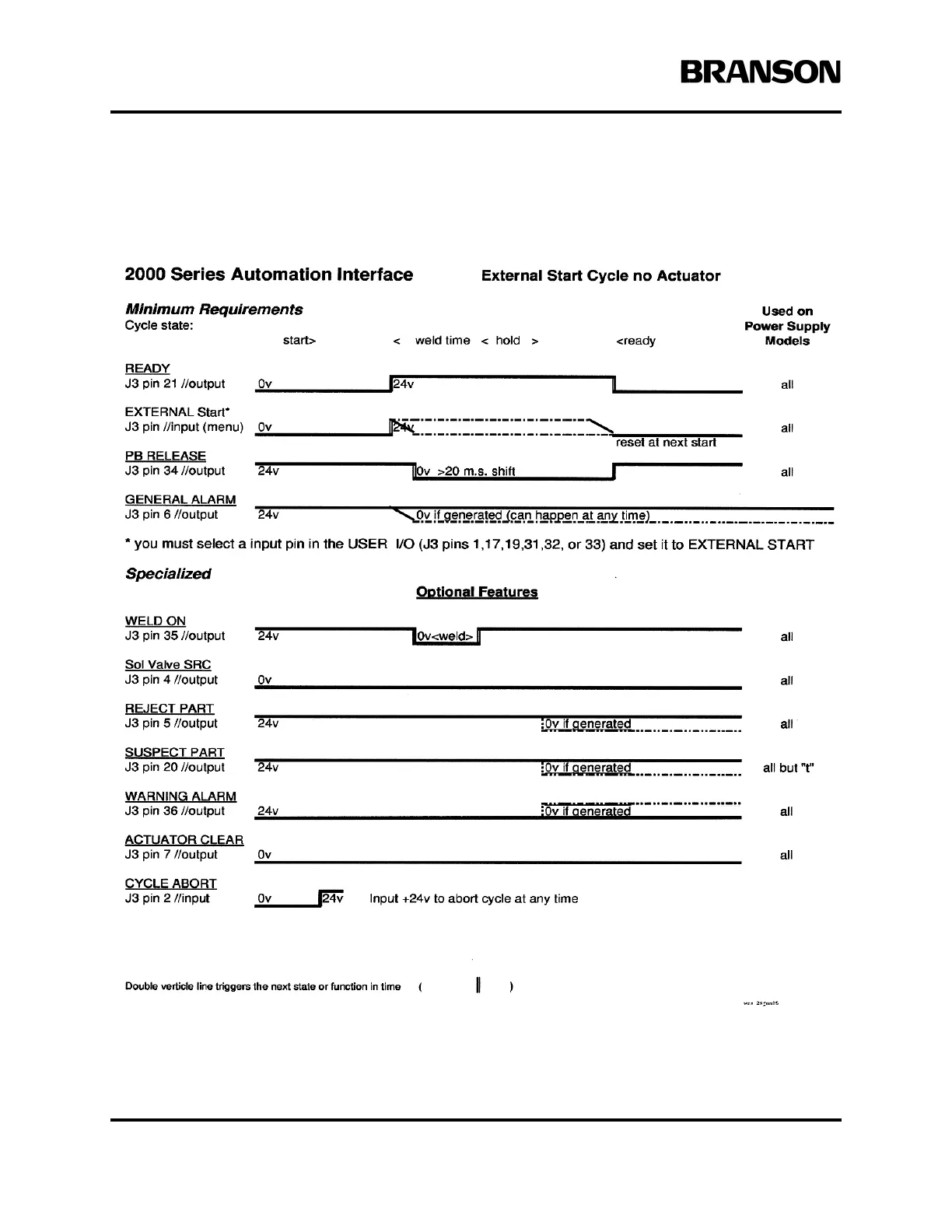 Branson 2000 series - 2-2000 Series Automation, Process Flow 11 (Requires Jumper 100-246- 1178)