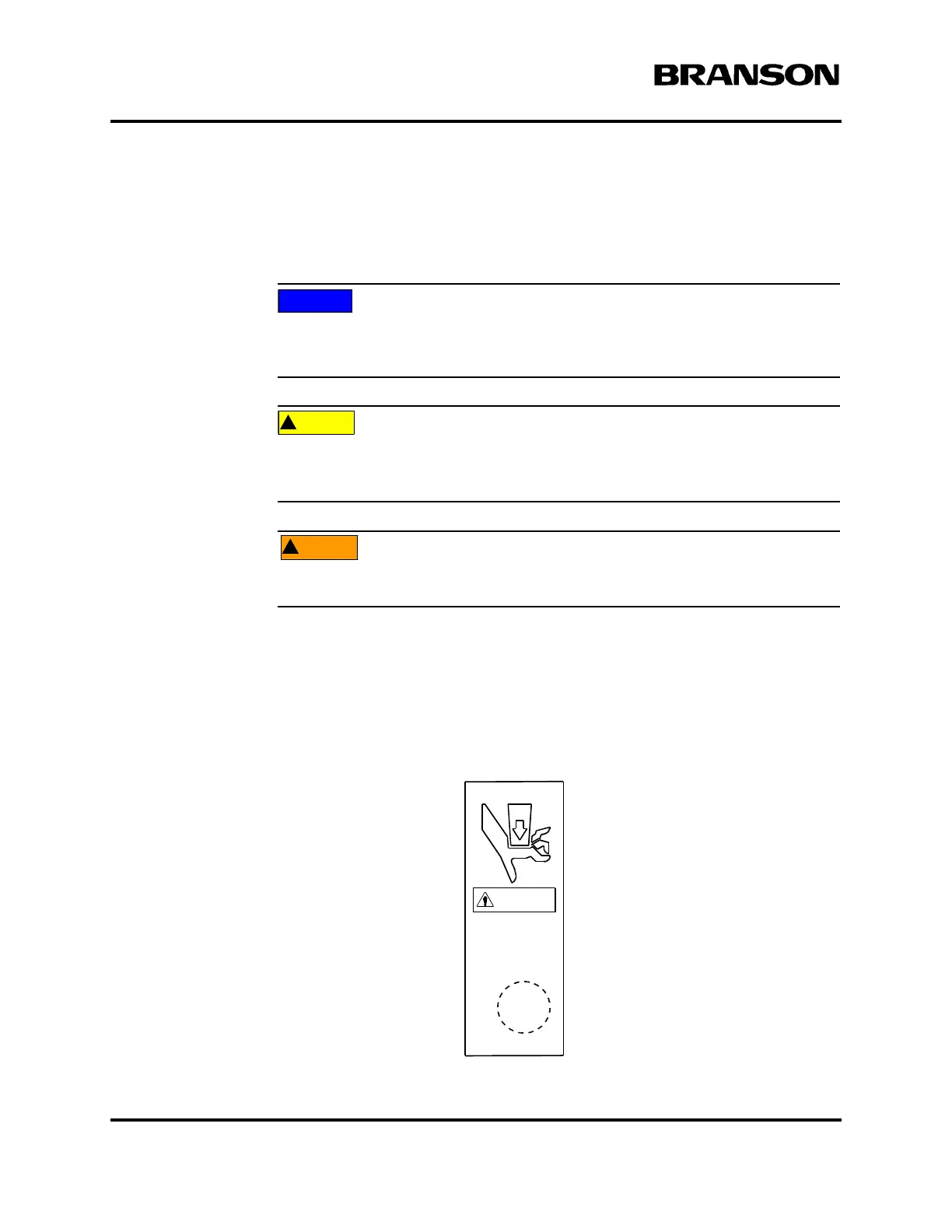 Familiar graphic warning symbols are used to alert the user to items of concern or hazard. The