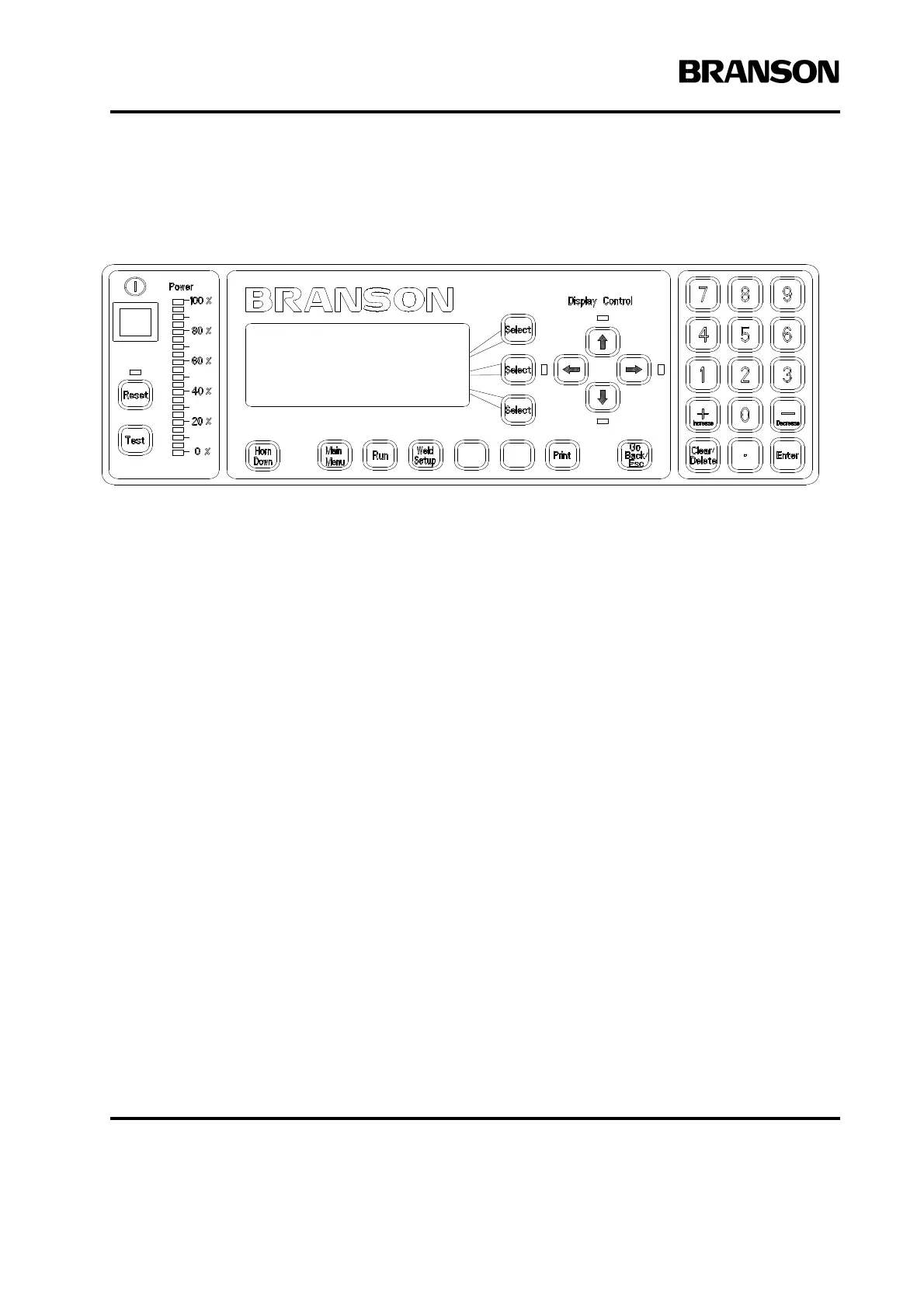 • Test: Press to display a menu you can use to test the ultrasonic power supply, horn, booster, and con-