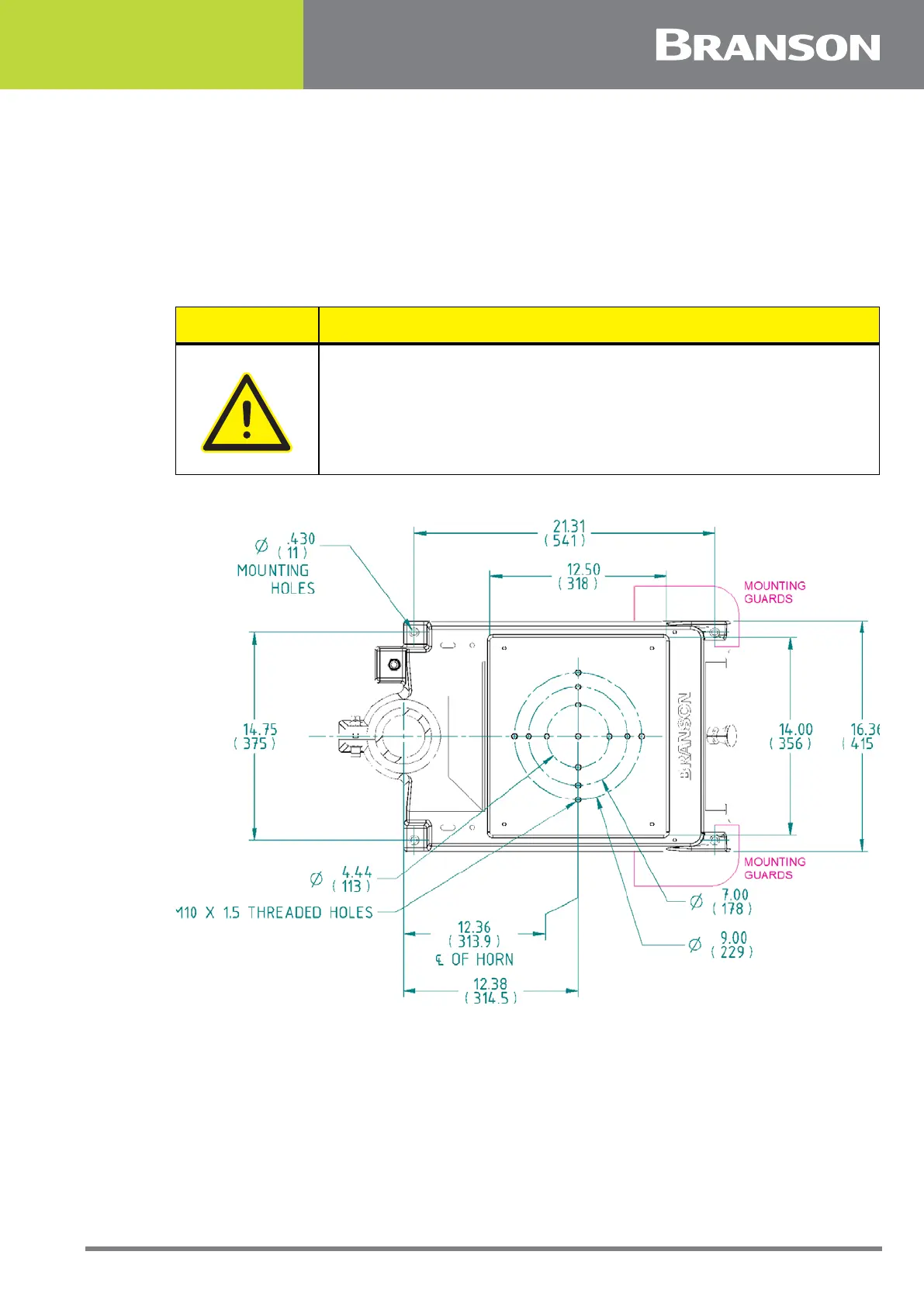 the optional Branson leveling plate kit. The base is tapped for metric M10-1.5 hardware.
