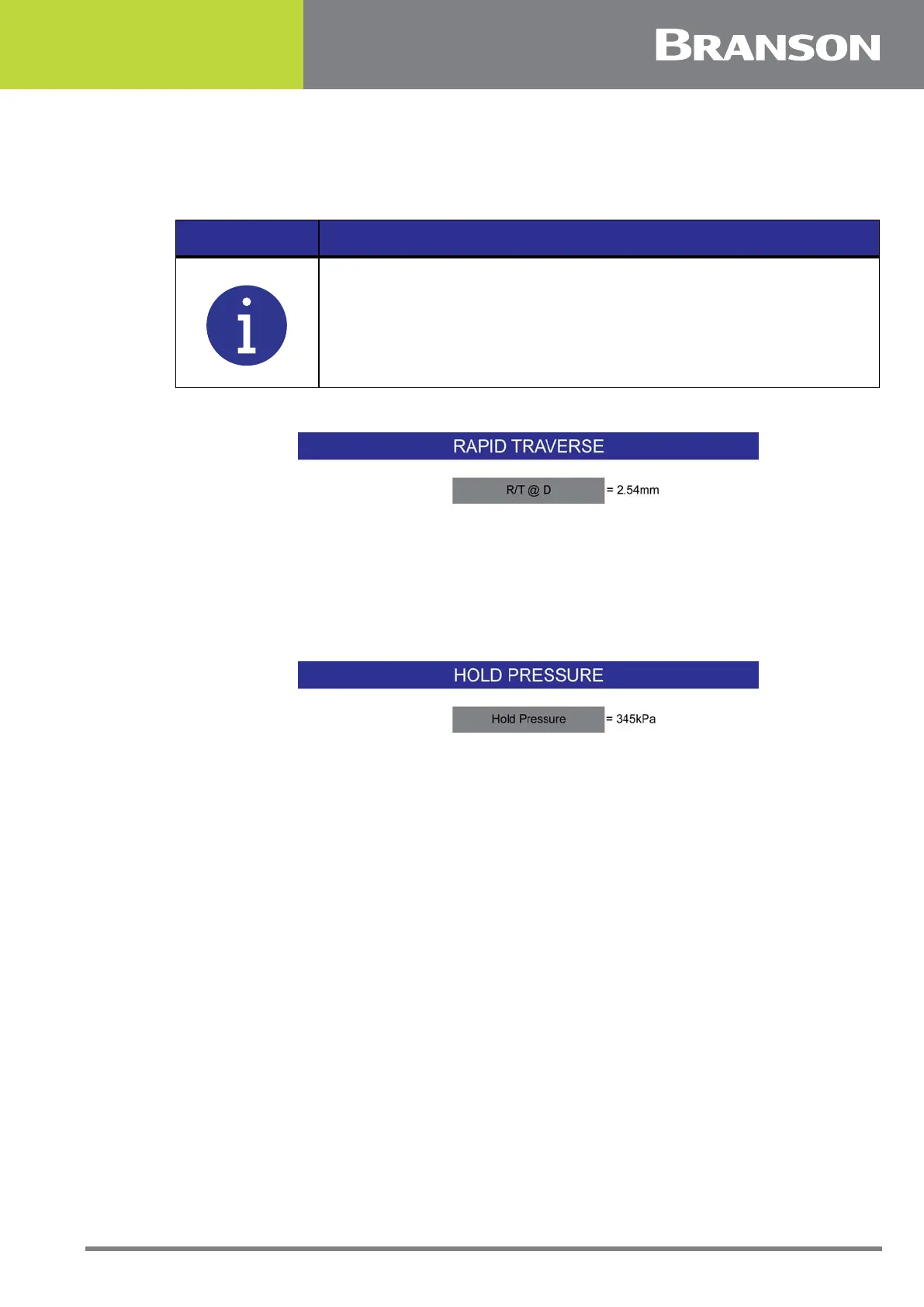 Default, the hold pressure will always equal the weld pressure. The hold pressure must
