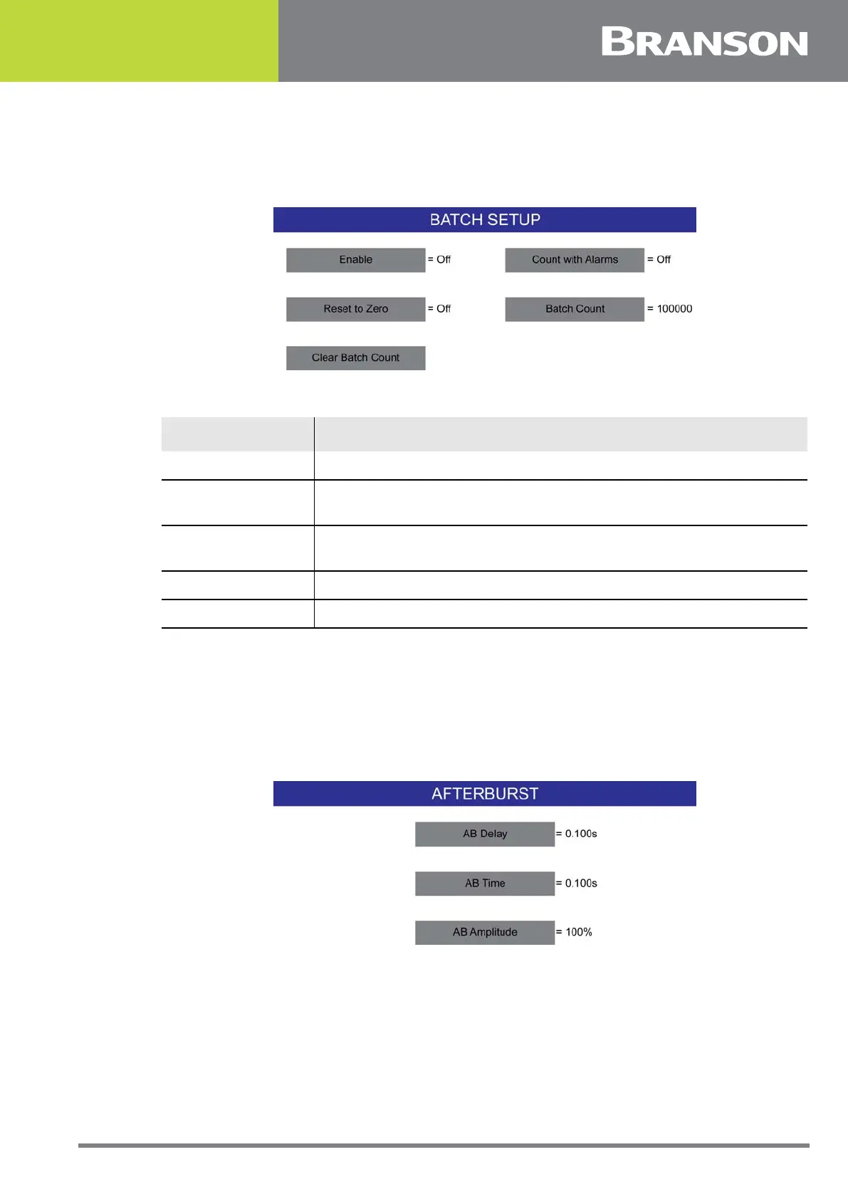 Batch Count Set the number of welds required in the batch.