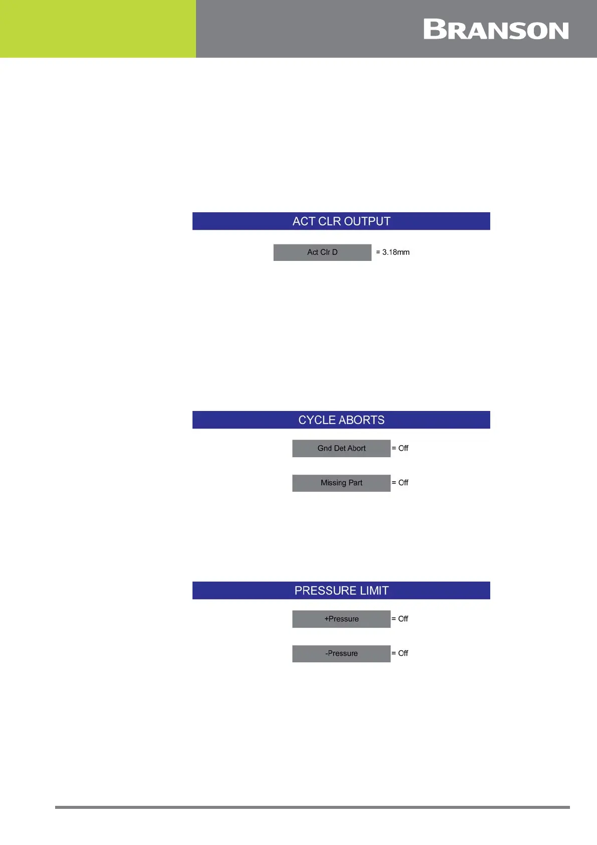 Pressure limit sets the minimum and maximum weld pressure alarms. If the weld pressure