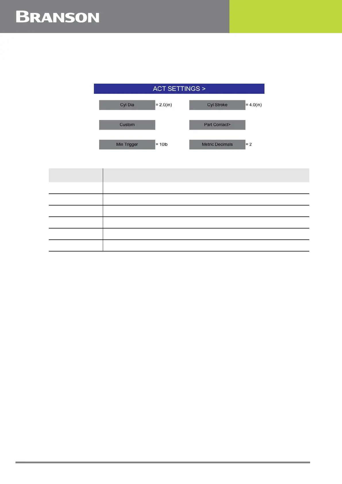 Min Trigger Set the minimum trigger in lb.