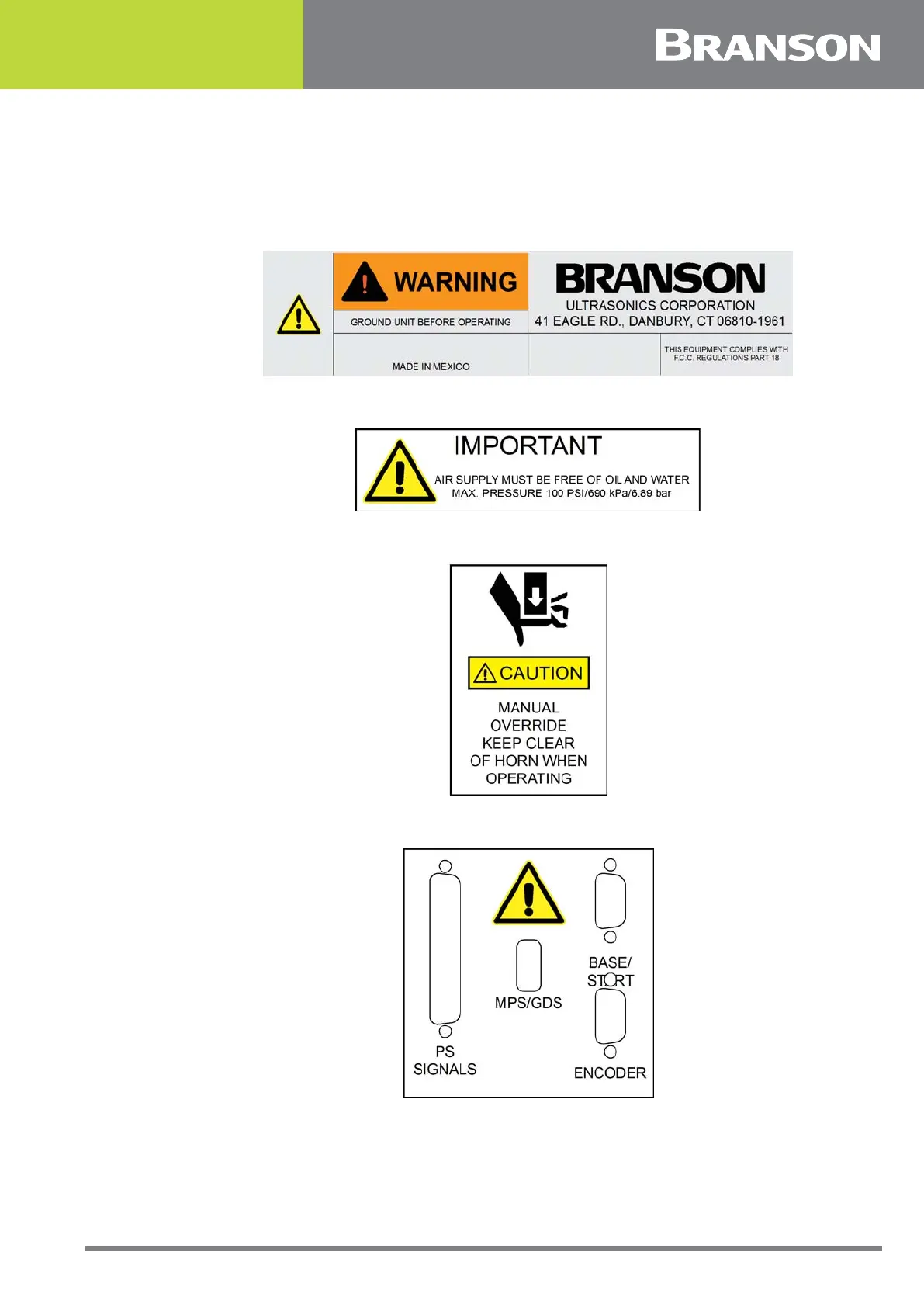 Figure 1.2 Caution label on the 2000Xc Actuator for the factory air supply