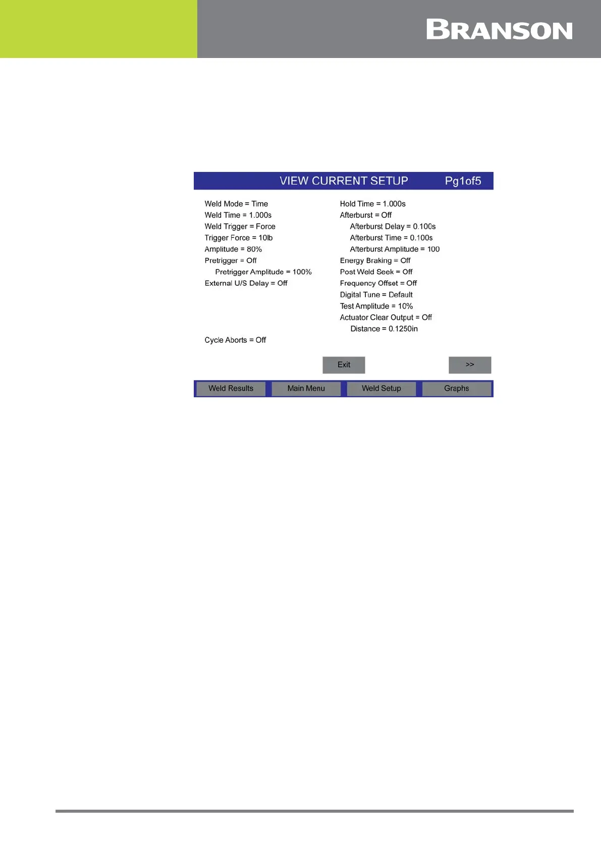 Displays the current setup, including batch count, pressure limits, actuator assembly