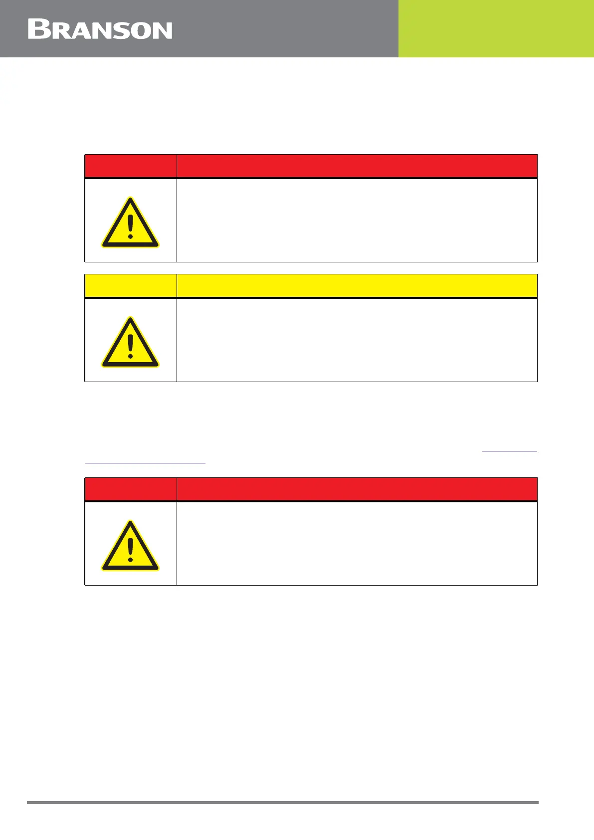pinched between the horn and the fixture. Contact Branson for