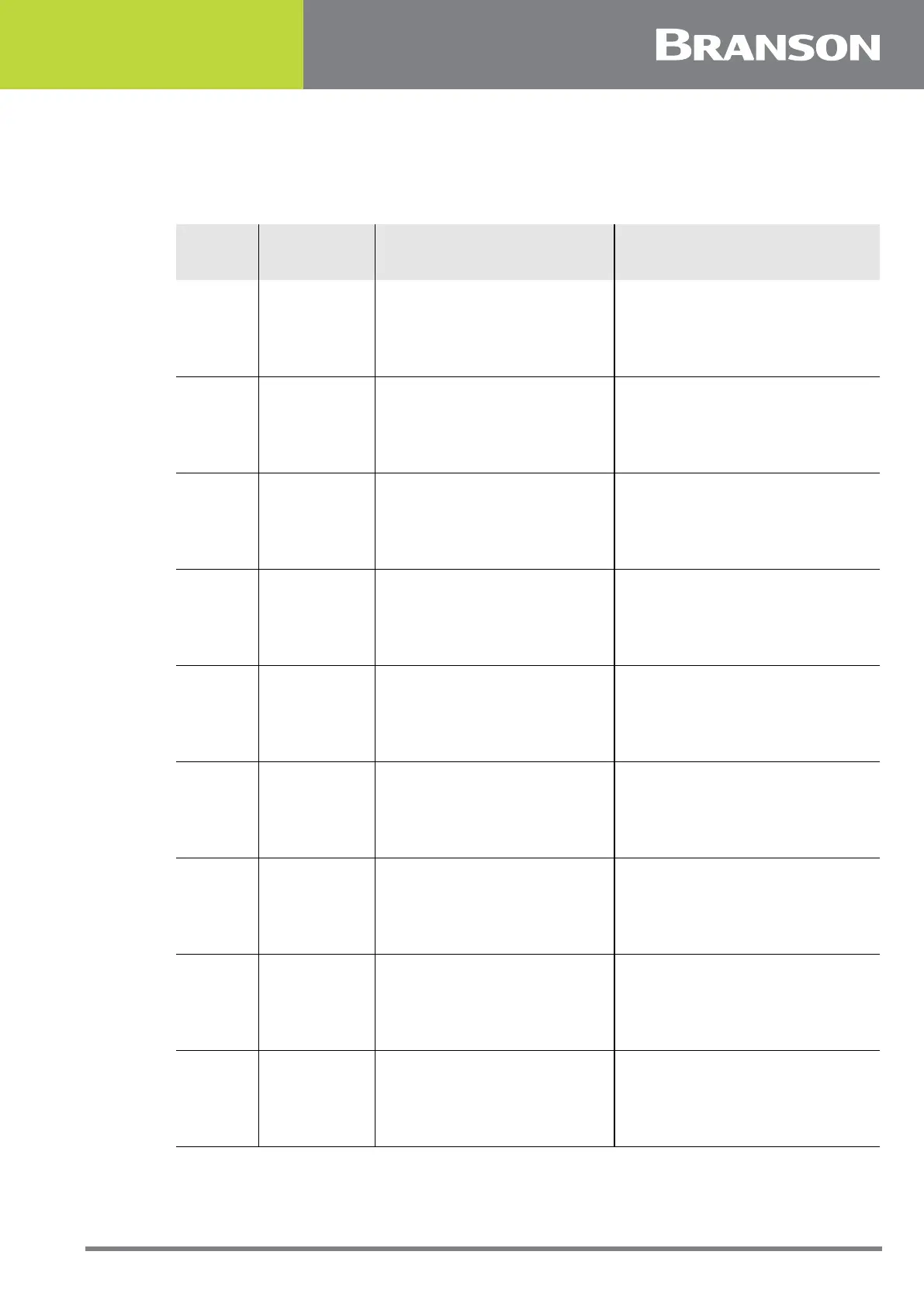 Table B.5 Setup Alarms and Messages, with Probable Cause and Corrective Action