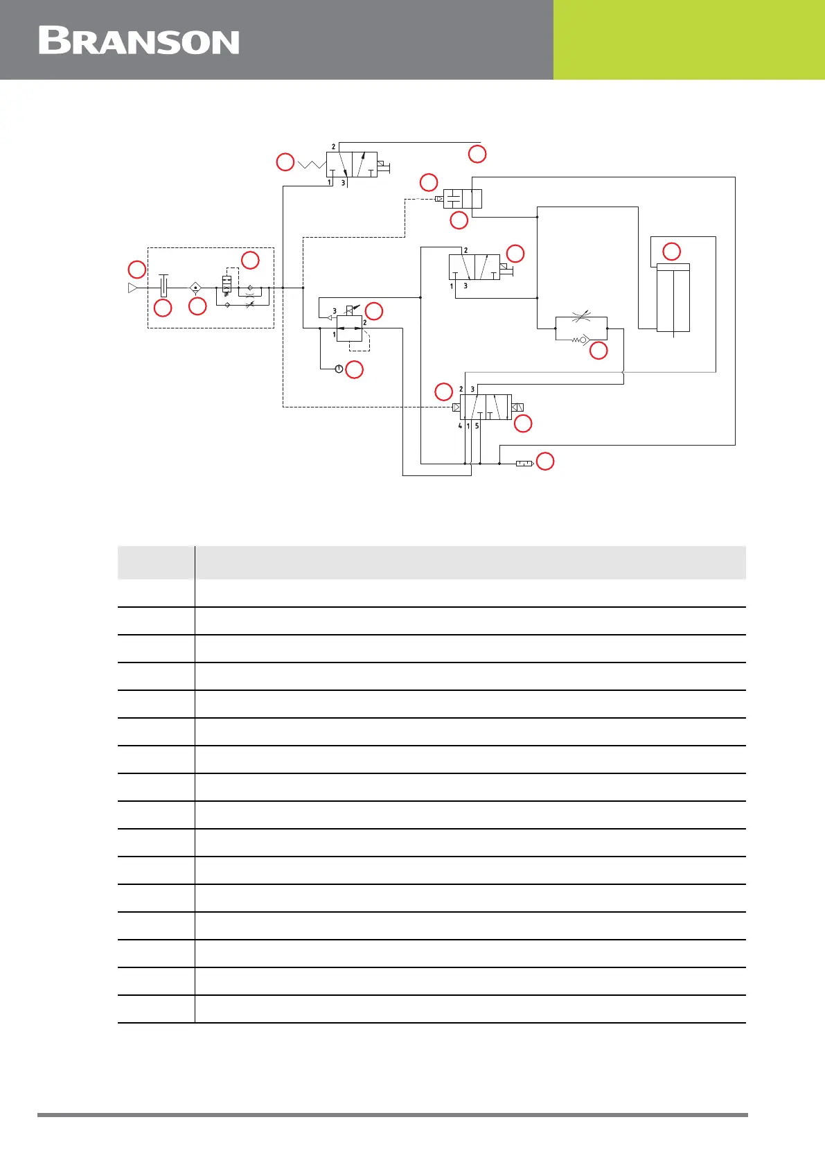 Branson 2000Xc - Figure 4.1 2000 Xc Actuator Pneumatic System; Table 4.9 2000 Xc Actuator Pneumatic System