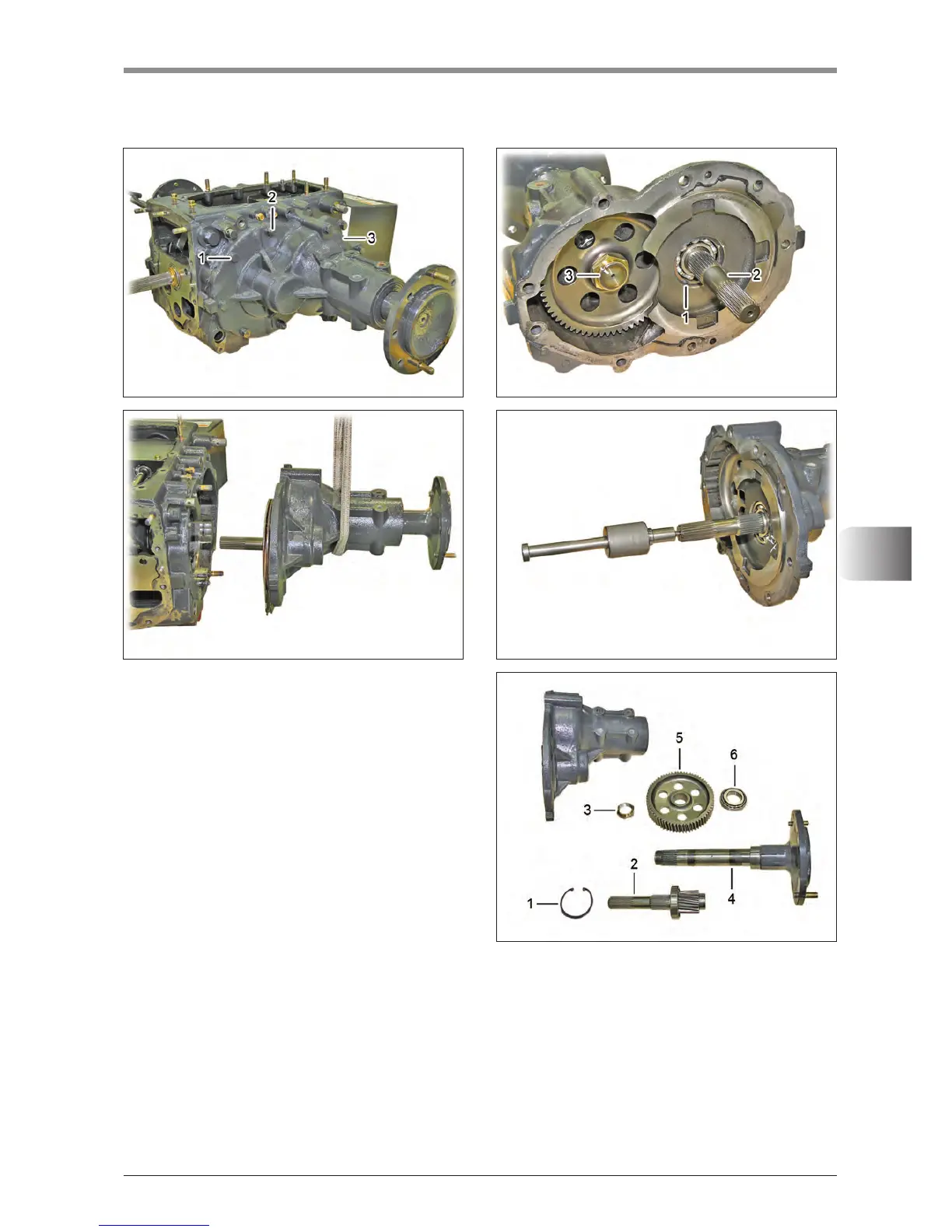 axle(4),nalgear(5)andtaperrollerbearing(6).