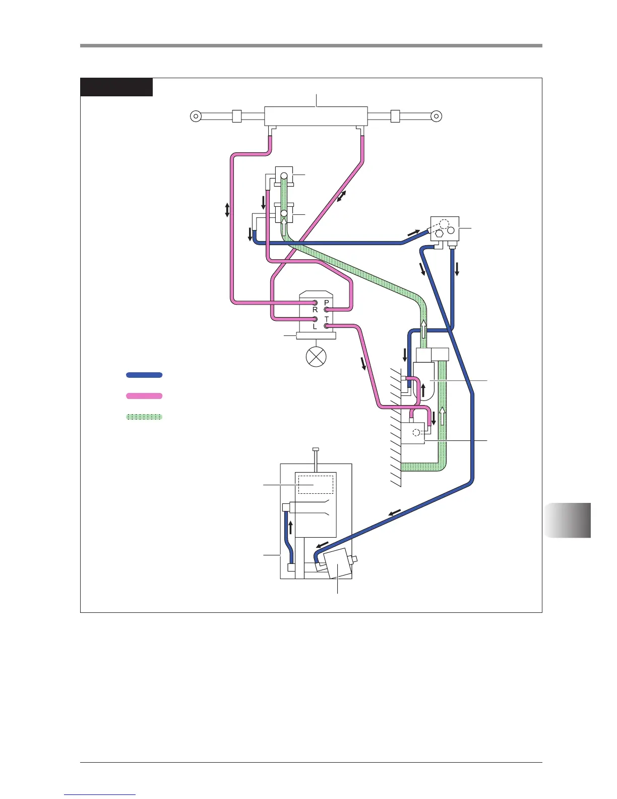 implement section receives hydraulic oil from the primary gear pump (13 cc/rev.) and supplies this oil to the