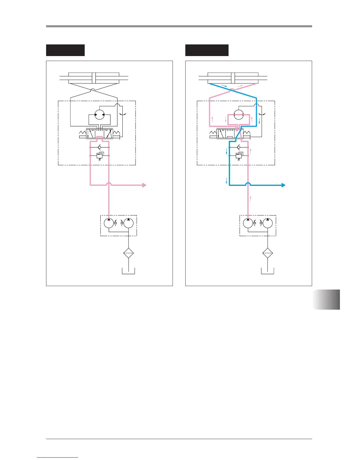 aligned, so hydraulic oil at the port P is returned