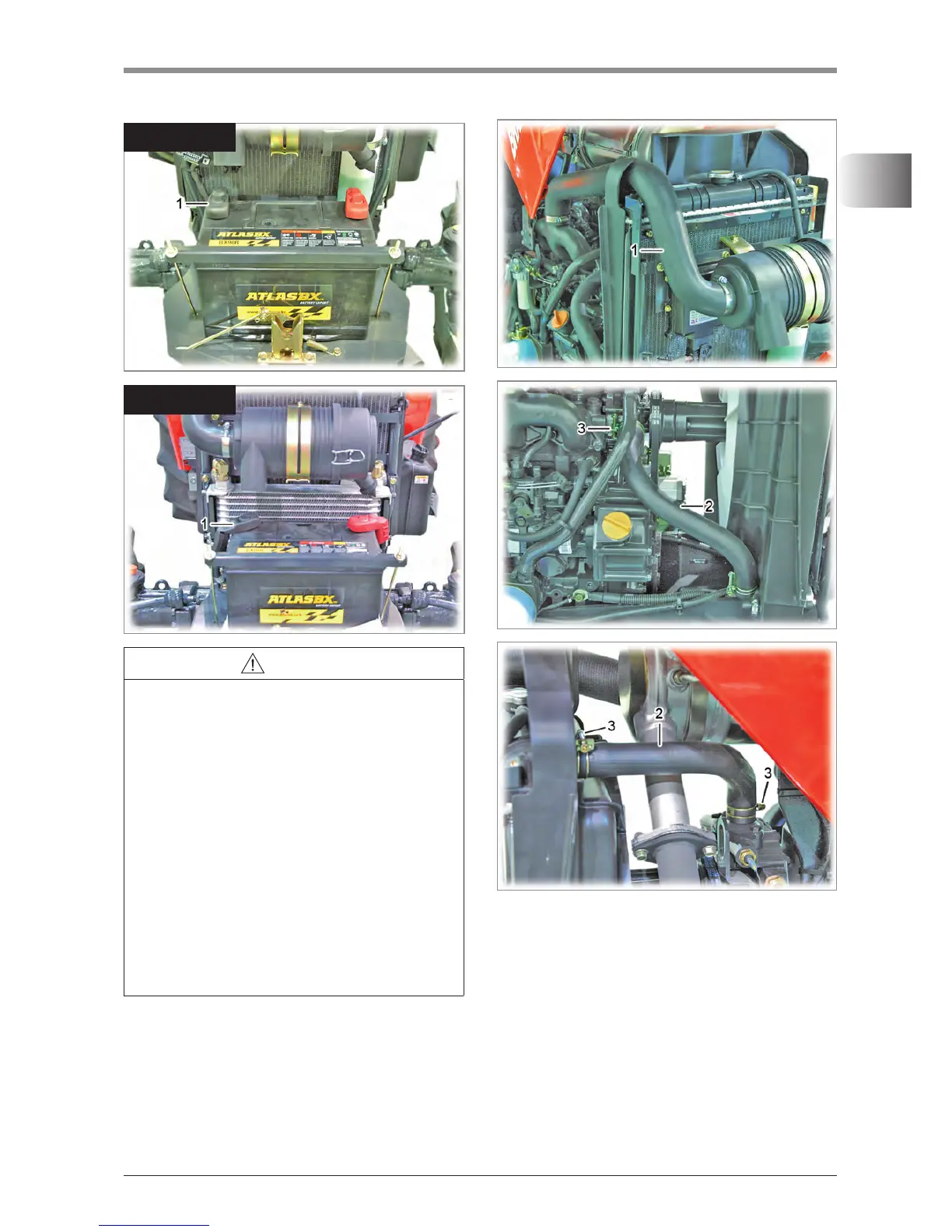 Check the hose and tighten the clamp (3).