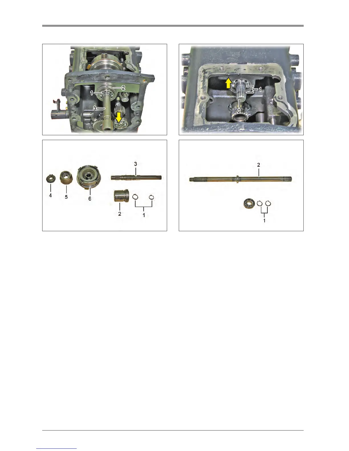 8. Remove the PTO clutch shaft snapring (1) and