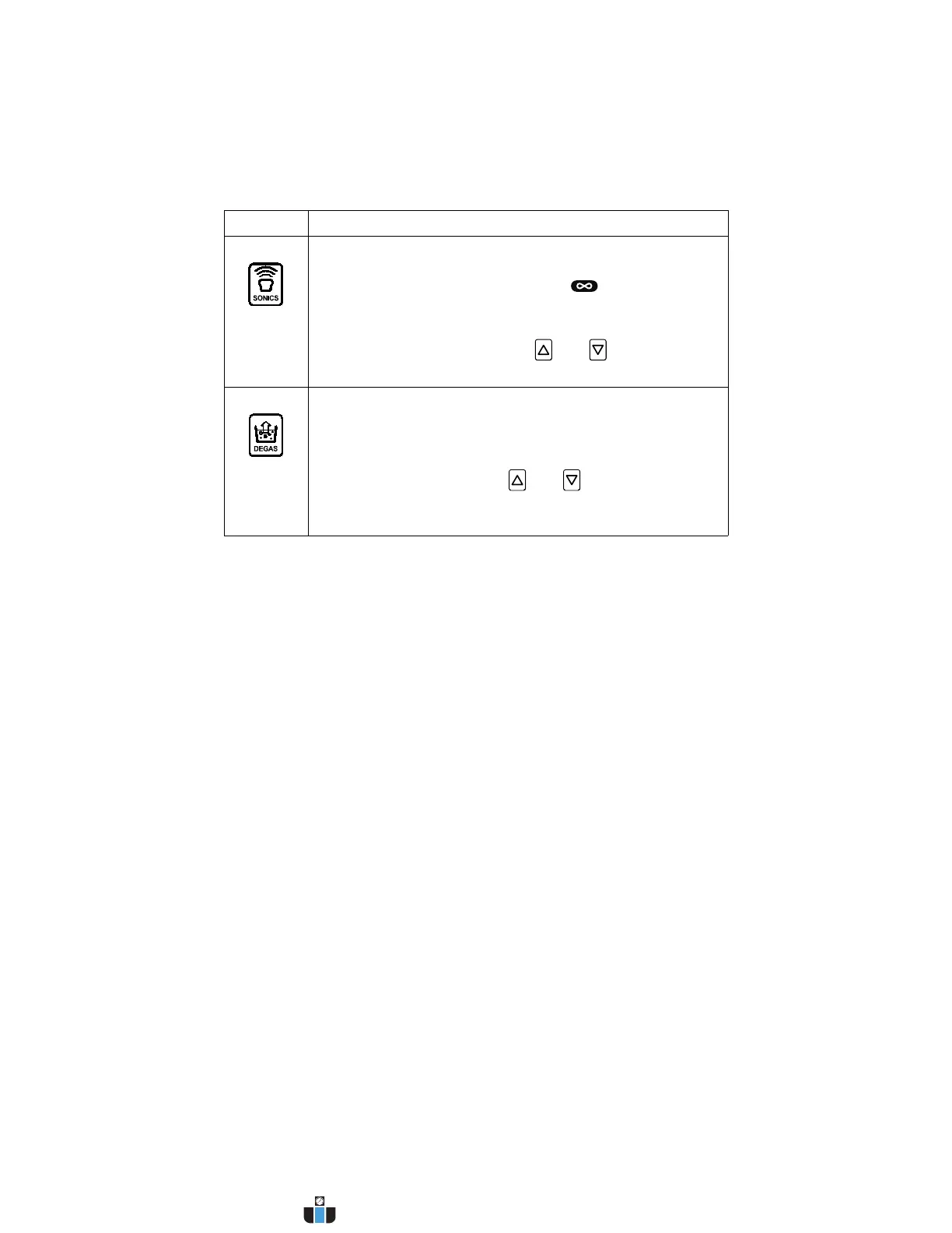 SONICS Press to activate ultrasonics. If running in Timed Mode, a