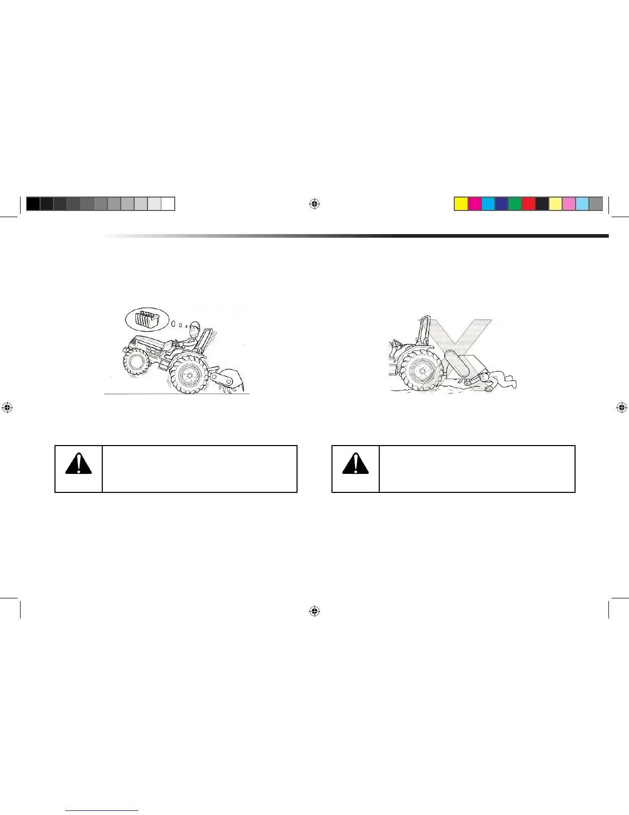 Do not get under implement or put your feet
