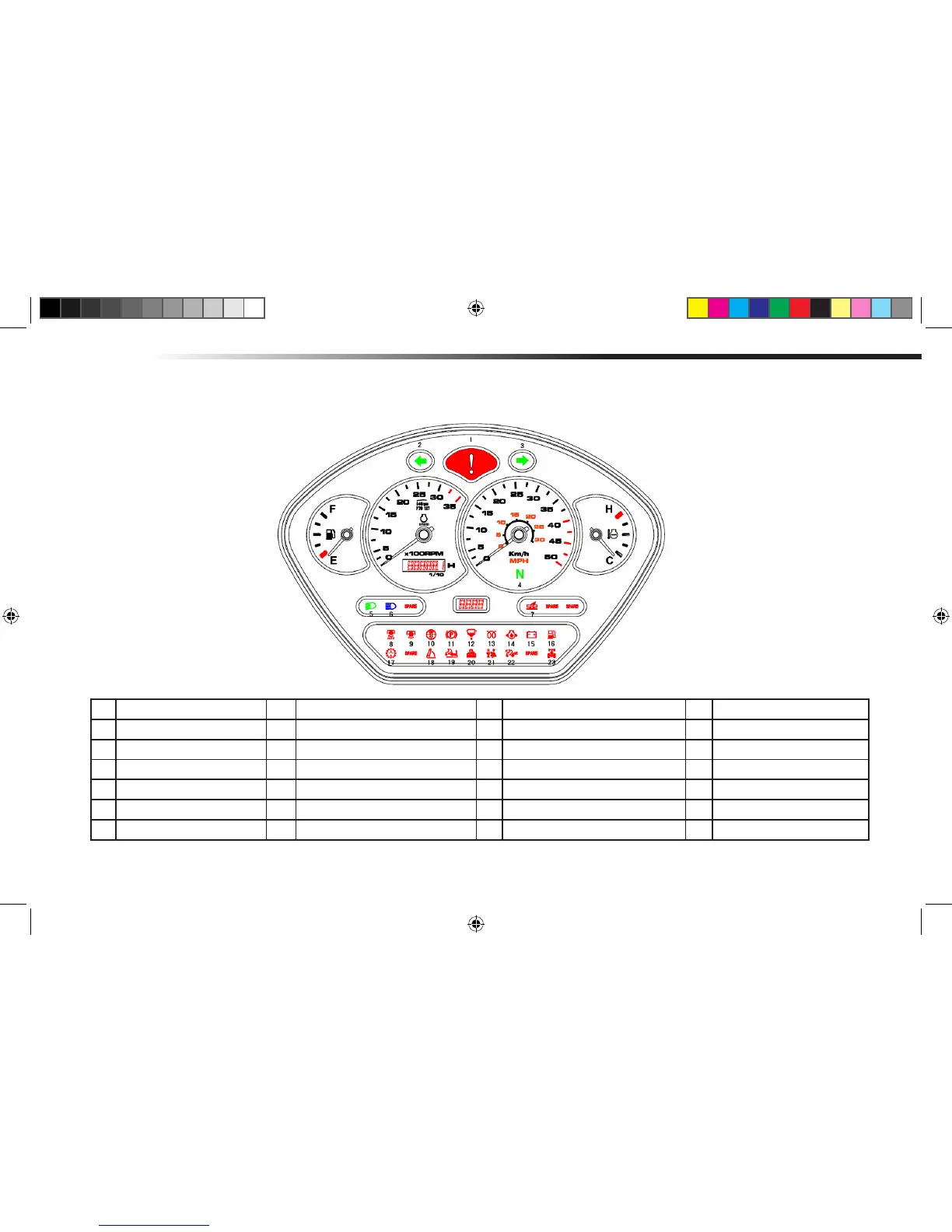 1 WARNING 2 DIRECTION LAMP (LH) 3 DIRECTION LAMP (RH) 4 NEUTRAL INDICATOR