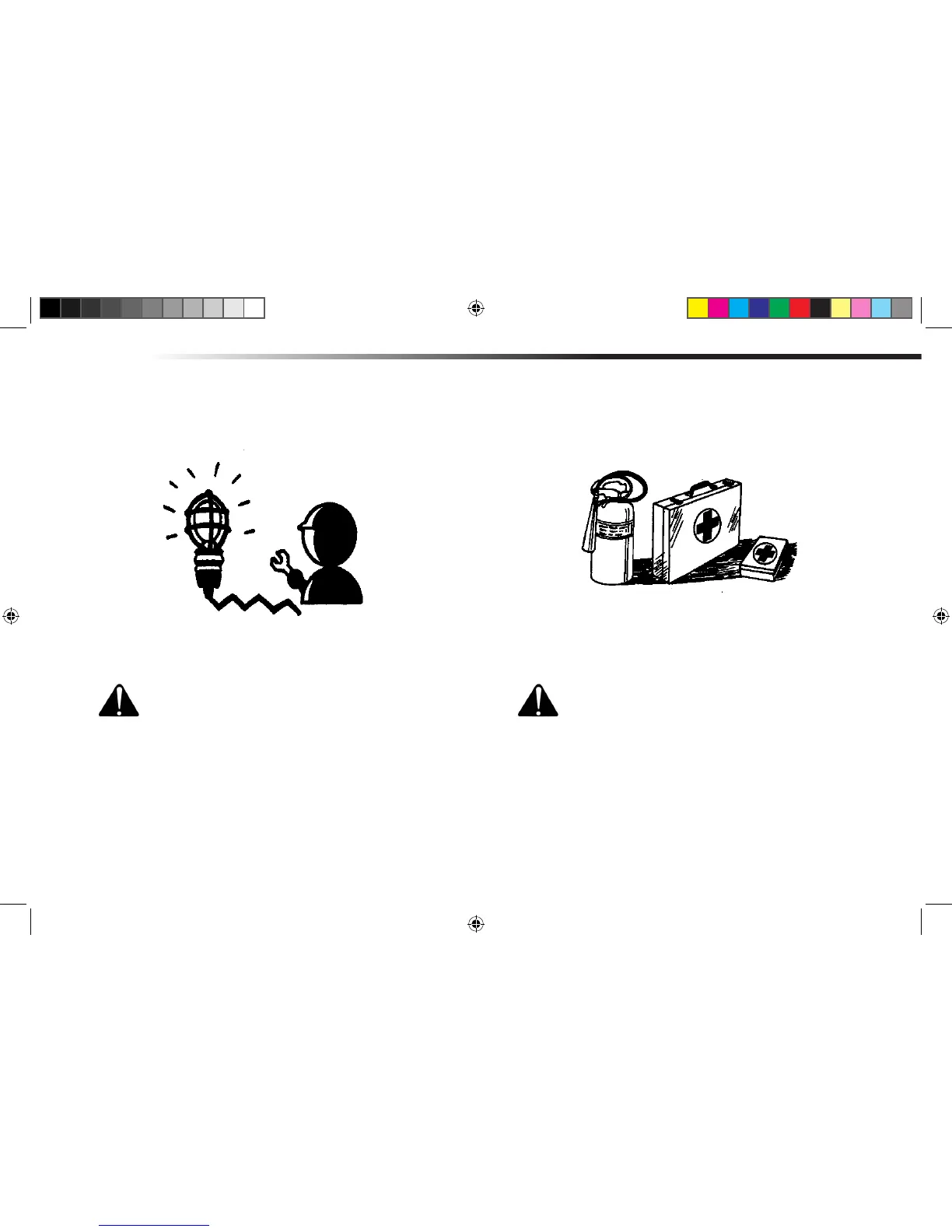 Keep a rst aid kit and re extinguisher handy