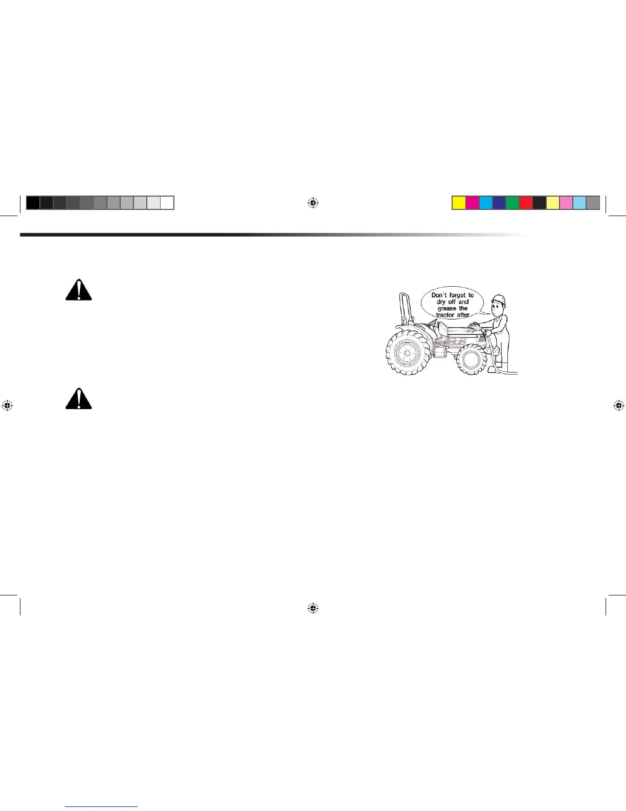 After work, clean the tractor. After cleaning, dry the mois-