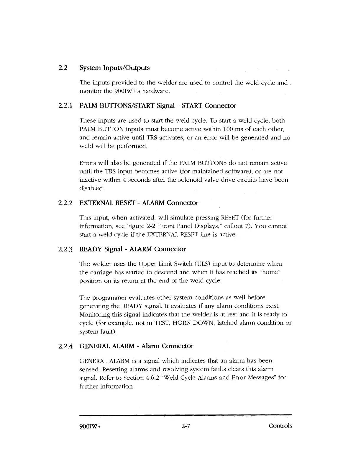 signal. Refer to Section 4.6.2 "Weld Cycle Alarms and Error Messages" for