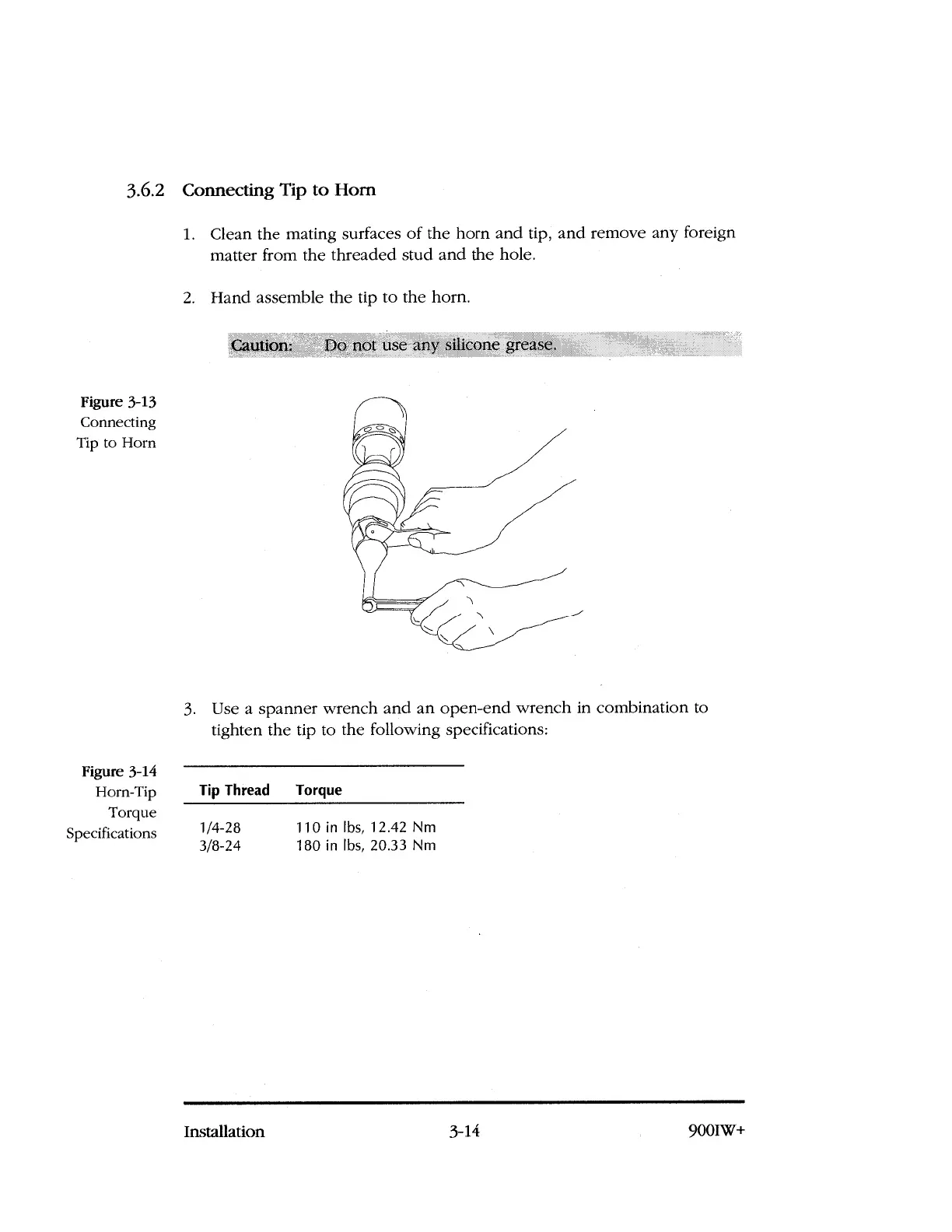 Clean the mating surfaces of the horn and tip, and remove any foreign