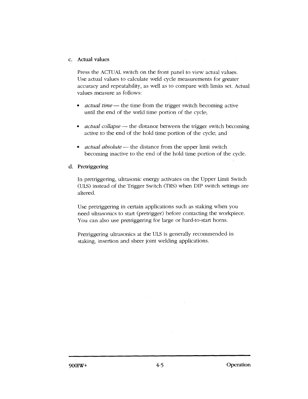 In pretriggering, ultrasonic energy activates on the Upper Limit Switch